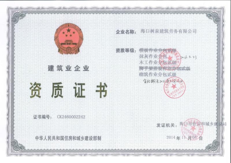 海口樹泉建筑勞務(wù)有限公司成立于2011年,公司位于海口,其前身是一家專業(yè)建筑施工隊,自2004年即開始在海南從事建筑勞務(wù)施工。自成立至今,公司已經(jīng)擁有一支科學管理、質(zhì)量過硬、能打硬仗,搶工期的專業(yè)隊伍。能獨立承擔大中型工業(yè)與民用建筑 、室內(nèi)外裝修、各類機電設(shè)備安裝工程。代表工程有海口濱海華庭、三亞時代海岸T01/02/04/05棟高層、合肥東海花園二期、陵水富力灣B區(qū)高層、三亞金中海(酒店)、瓊海大印經(jīng)典花園、海口環(huán)球海景大酒店(四星級酒店,在建中)、陵水珍珠大廈(五星酒店)、海口萬達廣場、美蘭機場二期。